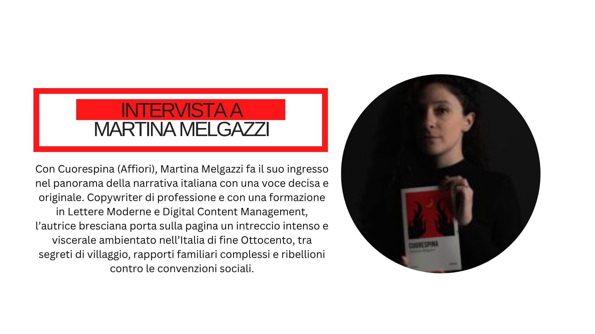 Con Cuorespina (Affiori), Martina Melgazzi fa il suo ingresso nel panorama della narrativa italiana con una voce decisa e originale. Copywriter di professione e con una formazione in Lettere Moderne e Digital Content Management, l’autrice bresciana porta sulla pagina un intreccio intenso e viscerale ambientato nell’Italia di fine Ottocento, tra segreti di villaggio, rapporti familiari complessi e ribellioni contro le convenzioni sociali.